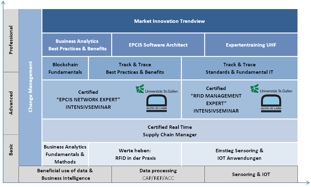 Von den Basics über Best Practice bis zum detailierten Expertenwissen. Unsere Schulungen und Webinars decken von der Datenerfassung mit AutoID über Datenaustausch durch standardisierte Schnittstellen bis zur unter anderem KI gestützen Analytischen Aufbereitung der Daten alles rund um den Electronic Product Code und das Thema serialisierte Daten und Methodiken ab.